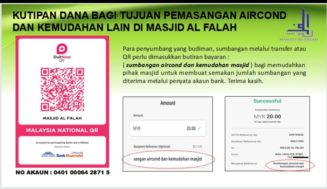 Assalamualaikum.... Sama² Kita Menyumbang Supaya Jemaah Selesa Beribadah.